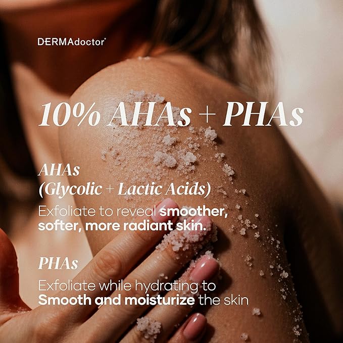 DERMAdoctor KP Bump Eraser Body Scrub with 10% AHAs + PHAs for Keratosis Pilaris, Dry, Rough, and Bumpy Skin, Dermatologist Formulated Exfoliating Body Scrub with Glycolic and Lactic acids - 16 Fl oz