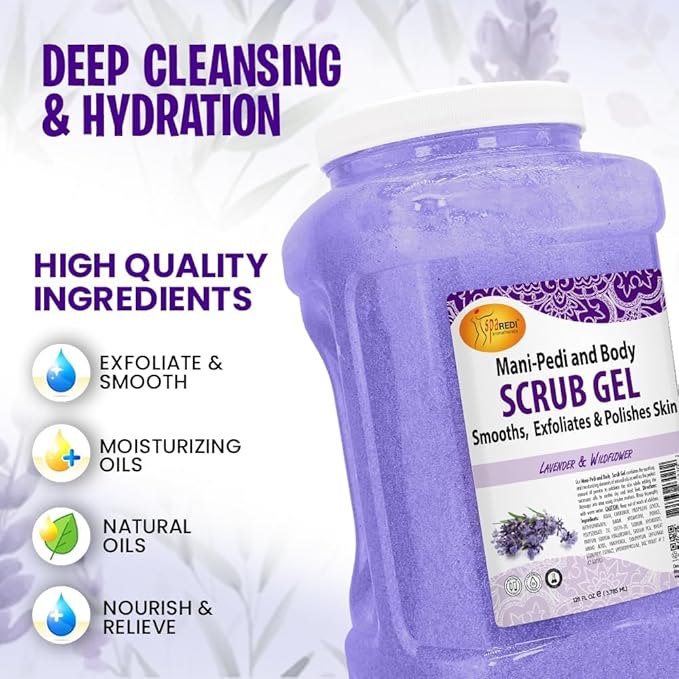 SPA REDI - Exfoliating Scrub Pumice Gel, Lavender and Wildflower, 128 Oz - Manicure, Pedicure and Body Exfoliator Infused with Hyaluronic Acid, Amino Acids, Panthenol and Comfrey Extract