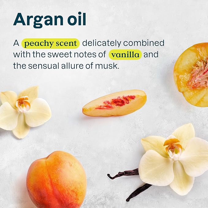 - ARGAN OIL: This body lotion for men and women is infused in a soft and comforting scent where juicy peach blends with sweet vanilla, wrapping the skin in creamy warmth