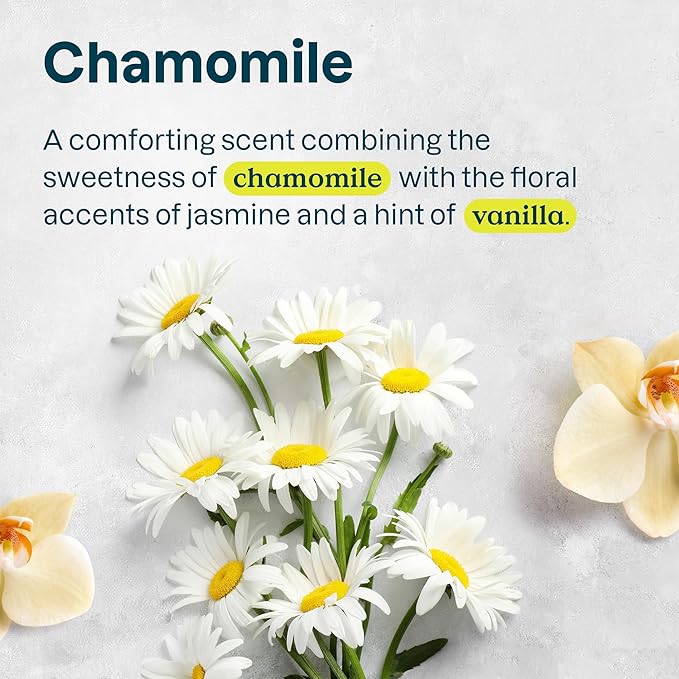 - CHAMOMILE: This body wash has a delicate, soothing scent where gentle chamomile meets floral jasmine and creamy vanilla for a peaceful, calming experience.