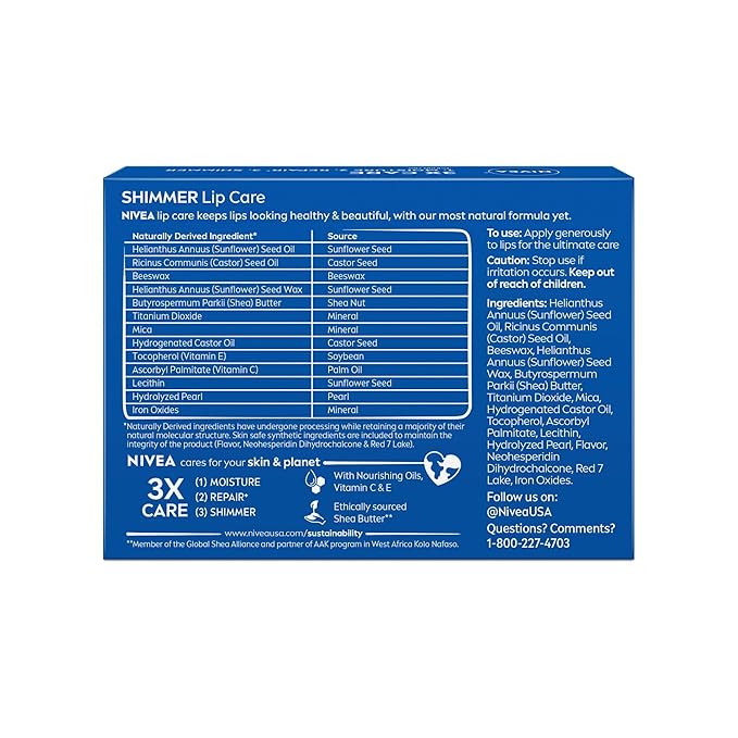- BULK LIP BALM PACK: This lip balm pack includes four (4) 0.17 ounce sticks of NIVEA Shimmer Lip Care, a perfect gift for friends and family or for stocking up