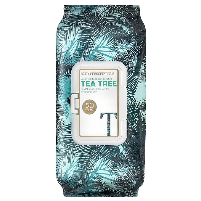 Body Prescription Makeup Cleansing Wipes - Gentle and Effective Face Wipes, 50 Count (Pack of 1), Tea-Tree