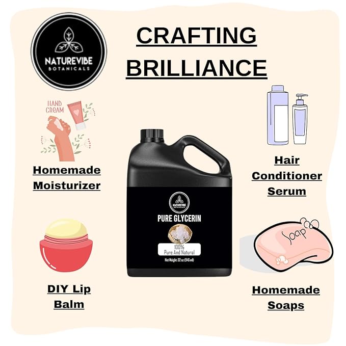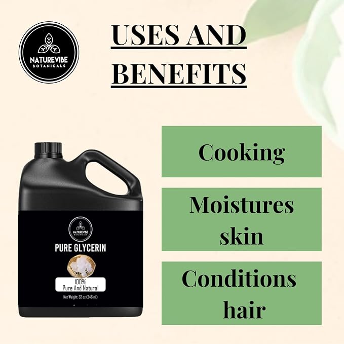 - ✅Naturevibe Botanicals Pure Glycerine, 32 ounces 100% Pure and Natural Glycerin Liquid Oil (946 ml)