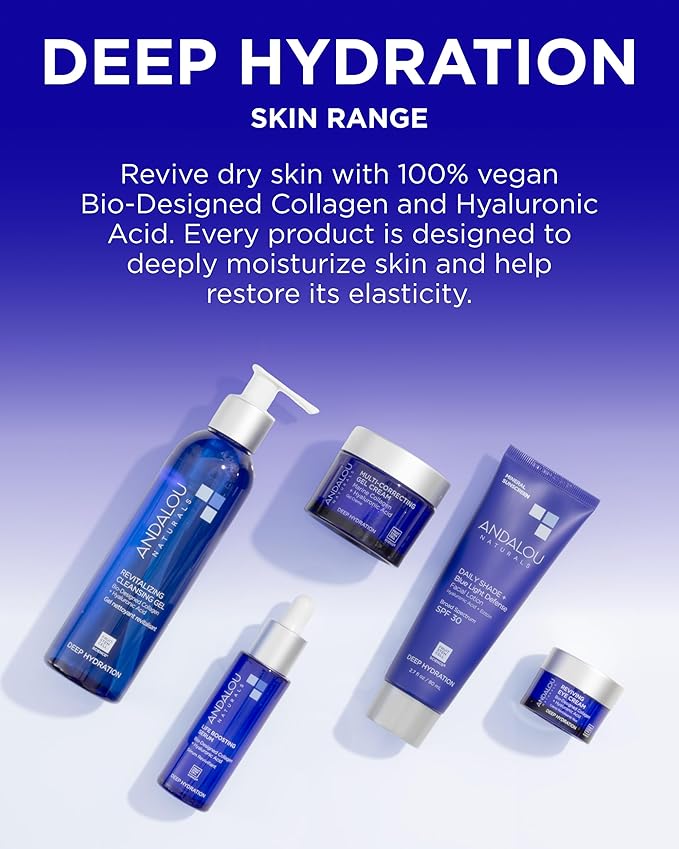 Andalou Naturals Deep Hydration Face Moisturizer Multi-Correcting Cream - Daily Skincare With Hyaluronic Acid, Vegan Collagen, & Fruit Stem Cells - Repair Skin Elasticity & Boost Hydration - 1.7 fl oz