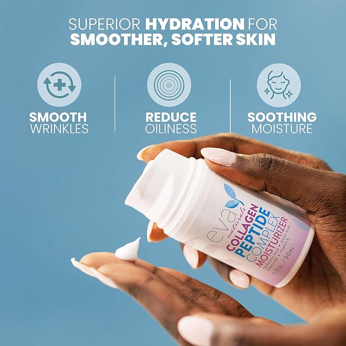 Eva Naturals Collagen Peptide Complex Moisturizer – Face Cream with Multi-Peptides, Hyaluronic Acid, Amino Acids, Vitamin B5 and E – Rich Night Lotion for Youthful Glow and Fine Line Care – 1.7 Fl Oz