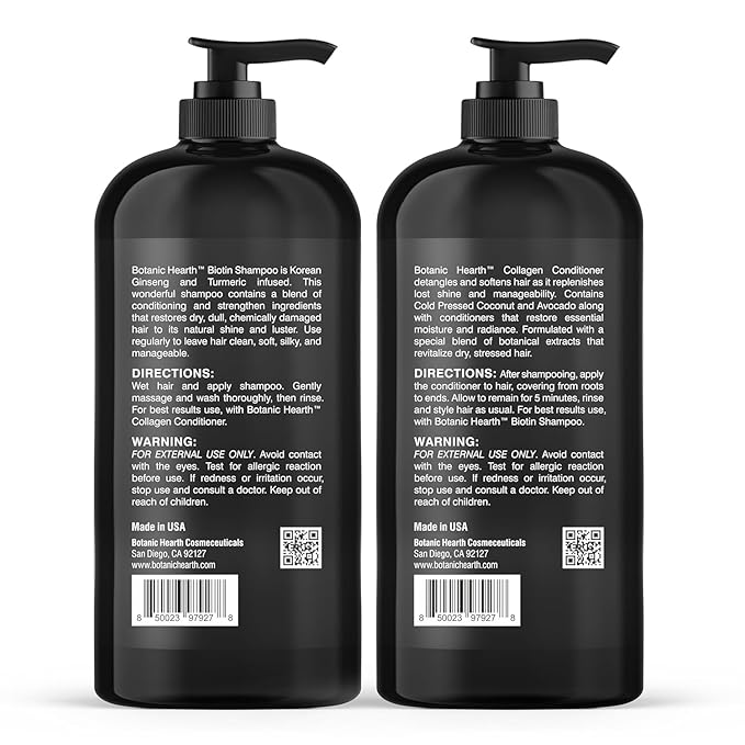 Botanic Hearth Biotin Shampoo and Conditioner with Collagen | Fights Hair Loss & with Korean Ginseng & Turmeric, Conditioner Promotes Hair with Avocado and Coconut | 16 fl oz x 2