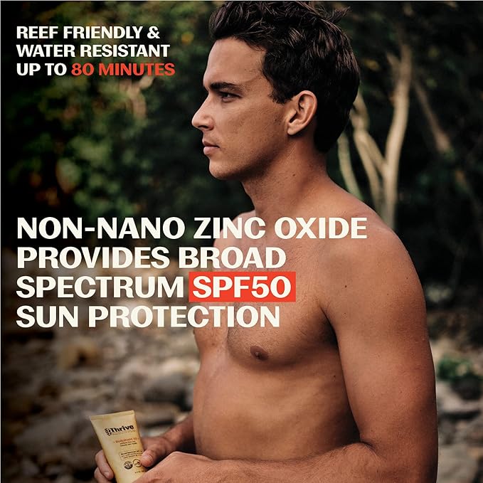 Thrive Natural Care Reef Safe Sunscreen SPF50 - Hawaii 104 Reef Act Compliant - Mineral Sunscreen Non-Nano Zinc Oxide - Vegan, (5.8 Oz (Pack of 1))