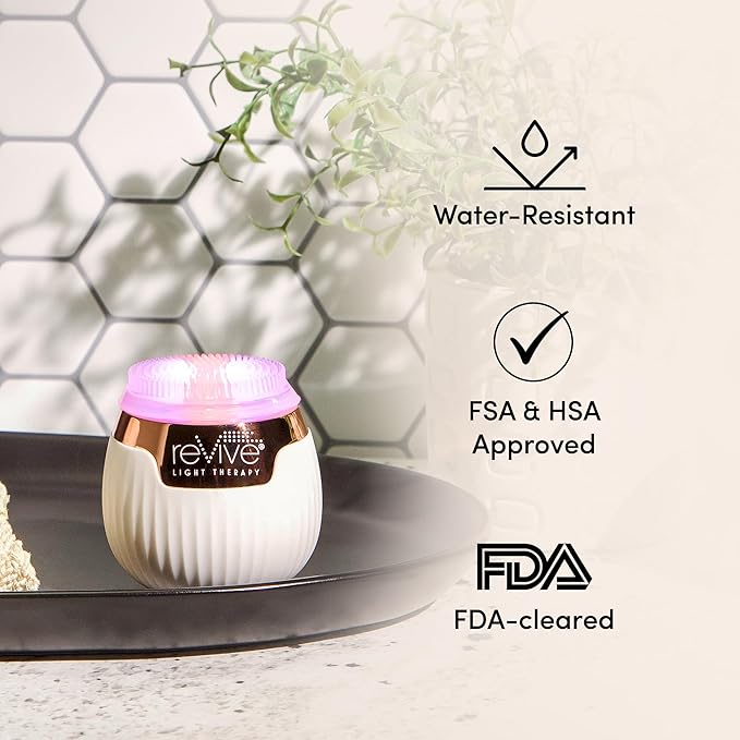 Revive Light Therapy Lux Collection Soniqué Mini, Rechargeable Sonic Face Cleanser Brush with Medical-Grade Blue & Red Light Therapy for Face, Acne & Wrinkle Care, Water-Resistant
