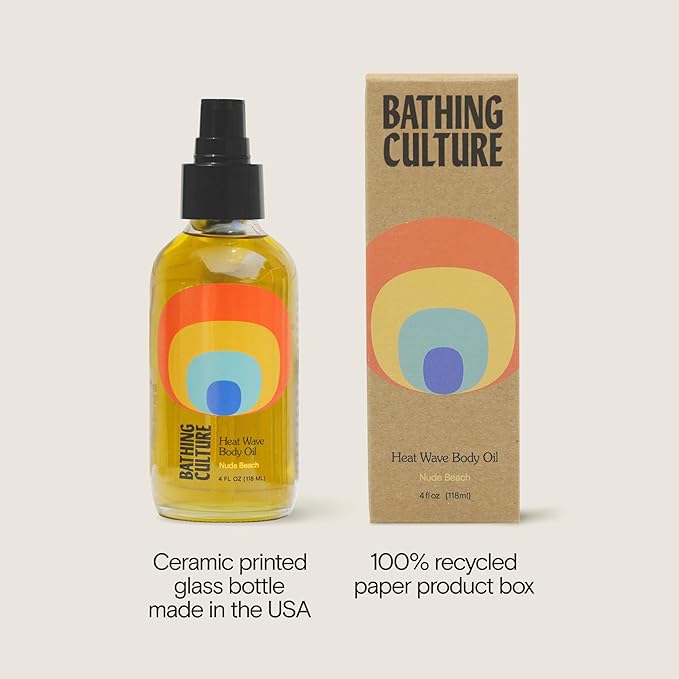 Bathing Culture, Organic Heat Wave Body Oil, Organic Body Oil for Women and Men, After Shower Moisturizer, Natural, Biodegradable, Sustainable, Vegan Personal Care, Nude Beach Scent, 4 fl oz, 118 ml