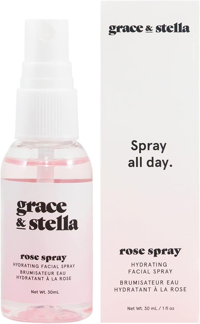 grace & stella Award Winning Rose Water Spray for Face with Glycerin & Aloe Vera - Travel Size (30ml) - Rosewater Face Mist for All Skin Types - Hydrating, Calming, Rejuvenating Facial Toner - Vegan