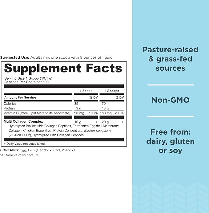 - Contains 10 types of collagen from 4 real food sources - beef, chicken, fish and fermented eggshell membrane; Delivers full-body benefits for healthy hair, skin, nails, joints and gut.