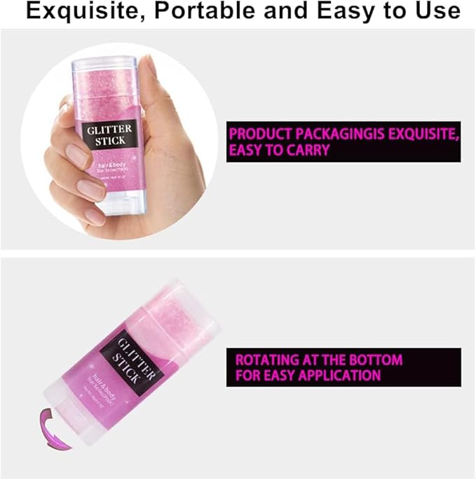 - 【Adhesive & Easy to Apply】Our cosmetic glitter stick is with good adhesion, no glitter glue required. Just glide it on, easy and quick, easy to control the amount applied. Sparingly apply for a subtle look or layer more for an intense dramatic effect. Ideal hair glitter for kids. Glitter flake face gems stick on well and stay all day and night.