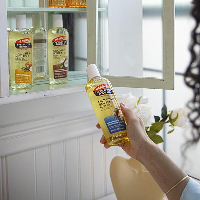 - Experience unparalleled hydration with Palmer's Body Oils Trio—your all-in-one solution for winter skin woes. These oils, enriched with cocoa, coconut, and shea, provide 48-hour moisture and can be seamlessly integrated into your routine.