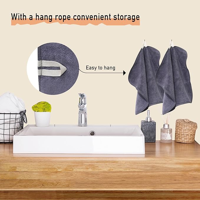 Makeup Remover Cloth, 12 x 12 Inch Microfiber Makeup Remover Towels Erase Makeup with Just Water, Reusable Grey Microfiber Face Towels Washcloths