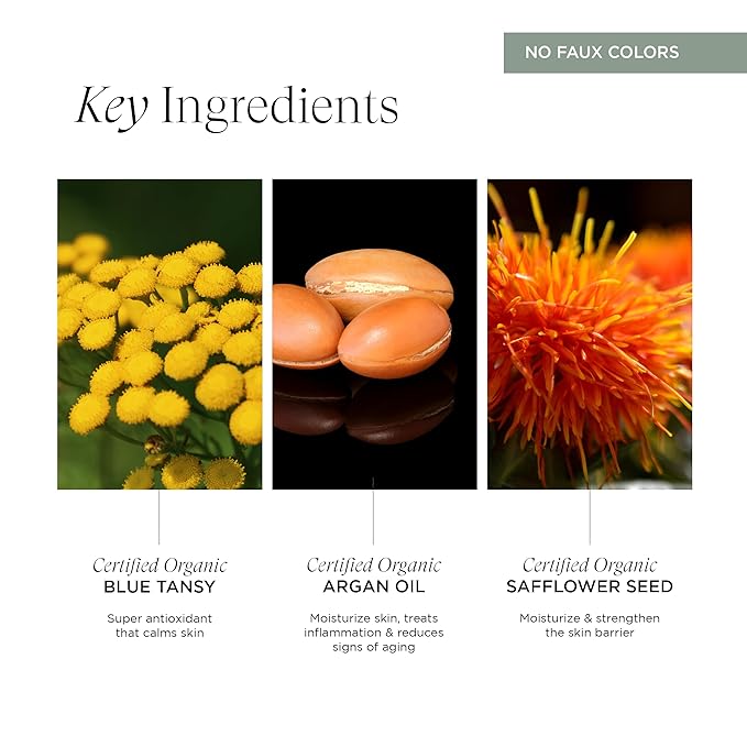 - Certified Organic Ingredients: Features pure Argan, Blue Tansy, Açaí, and active essential oils for skin rejuvenation