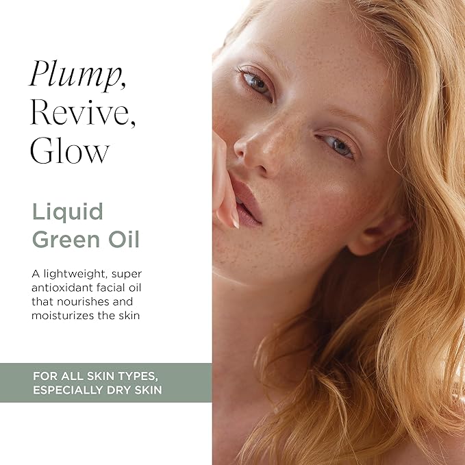 Intelligent Nutrients Liquid Green Face Oil - Lightweight Organic Facial Oil for Radiant Skin, Hydrating Oil Visibly Plumps Skin - Vegan - 1 Oz