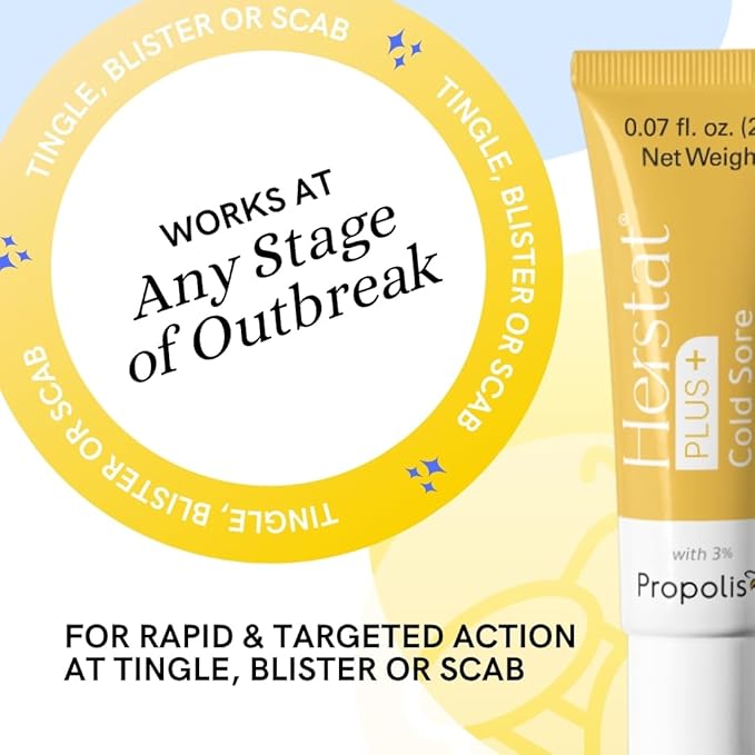 - β‘ TREATS COLD SORES FAST: Herstat+ Cold Sore Treatment with 3% Propolis Extract and Camphor has been specifically designed to treat cold sores fast and also helps relieve the pain and discomfort that comes with cold sore outbreaks.