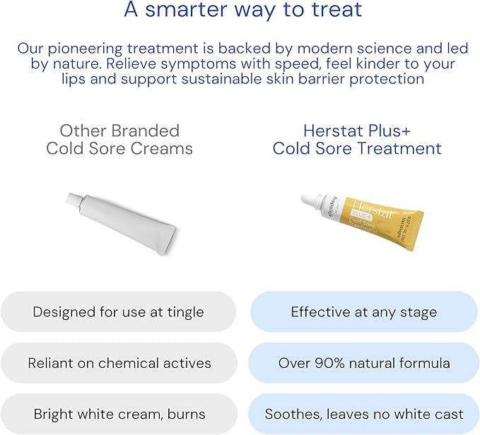 - π― TARGETS PAIN: Herstat+ Cold Sore Treatment offers targeted and highly effective pain relief, and can be applied directly to the affected area at any stage of a cold sore outbreak. Herstat Plus+ quickly works to soothe itching, burning and tingling lips, effectively targeting pain.