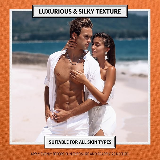 - Tan Smarter, Not Harder: Our exclusive melanin-boosting technology enhances your skin’s natural tanning process for a deeper, longer-lasting bronze—without excessive sun exposure. The lightweight texture melts effortlessly into the skin, leaving a soft, velvety finish.