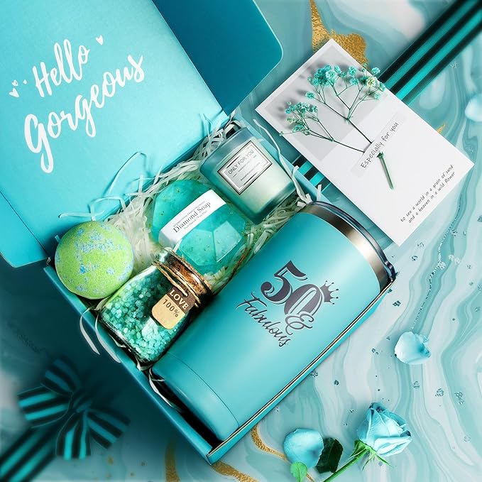 50th Birthday Gifts for Her, Happy 50th Birthday Basket Gifts Box for Women Grandma Mom Wife Sister Best Friend Coworker Bestie, 50 Year Old Birthday Gifts for Women