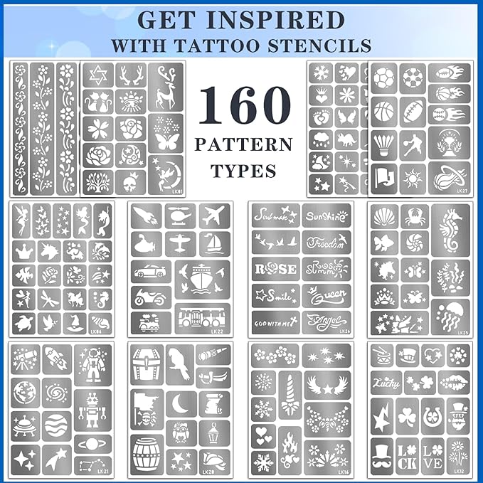 - Variety of Vibrant Colors: 12 different colors of body art body markers pens temporary tattoo markers for kids adults, bright and rich colors, includes 160-pcs easy-to-use temporary tattoo stencils, let your creations have more colorful expression