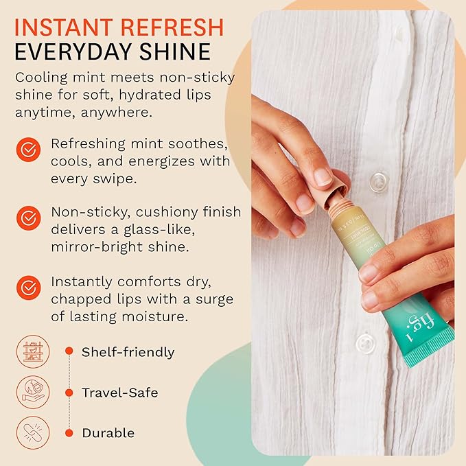 - Refreshing Mint. Clinically Approved Comfort Infused with natural mint, this gloss provides a cooling sensation and locks in moisture for a soft glow. Dermatologist approved and clinically tested, it offers a gentle, non-sticky experience with a subtle look.