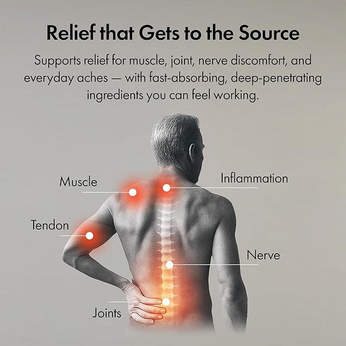 - MAXIMUM STRENGTH RELIEF: Formulated to support relief from muscle, joint, tendon, and nerve discomfort. Designed for everyday aches and soreness with fast-absorbing ingredients you can feel working. Helps support comfort in common areas such as the knees, shoulders, back, neck, feet, and hands.