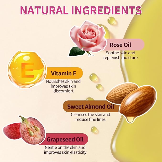 - Safe for All Skin: Our skincare oil is formulated with a mild, safe formula that is gentle enough not to cause discomfort due to the harsh texture, and can be used by people with dry, oily and combination skin without the need to change products frequently depending on skin type.
