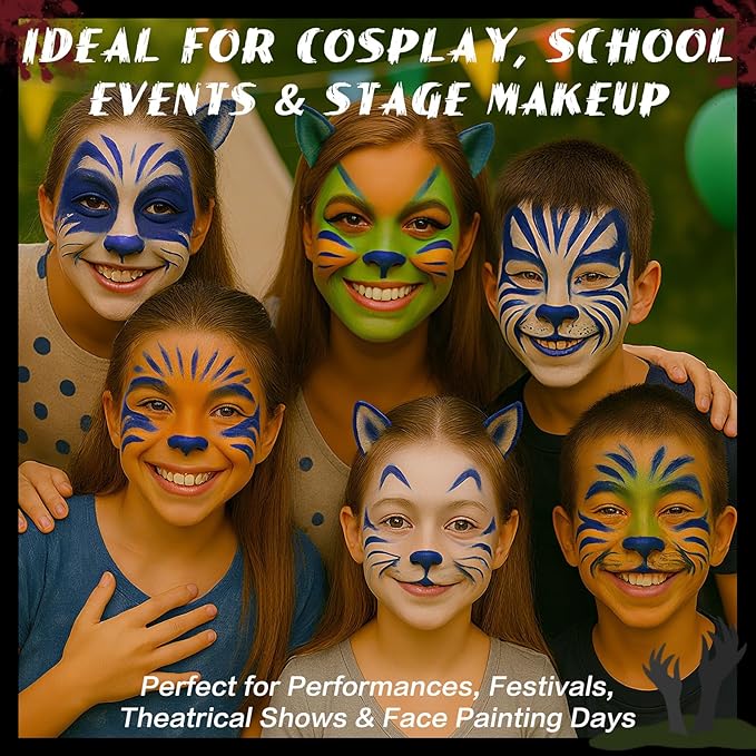 - 【Skin-Safe & Multi-Purpose】Formulated with non-toxic, vegan, and paraben-free ingredients, this cruelty-free paint is gentle on all skin types. Great for kids, adults, beginners, and professionals. Can also be used as an eye black stick for football, baseball, softball, or hunting camo.