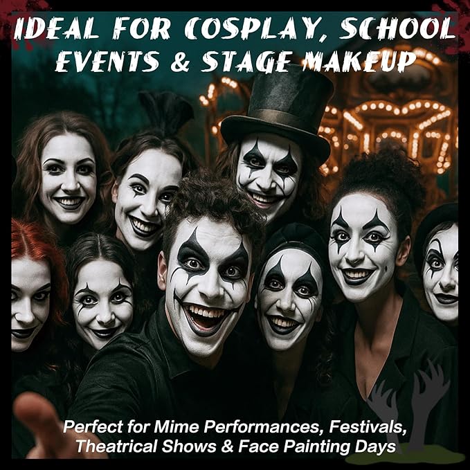 - 【Great for Halloween & Special Occasions】 Perfect for Halloween, cosplay, or stage effects, this paint stick lets you create popular looks including Clown, Skeleton, Skull, Corpse Bride, Vampire, Zombie, Witch, Sally Face, Goth, Avatar, Mermaid, Spiderweb, Hulk, Monster, and more. Ideal for SFX makeup, theatrical performances, birthdays, and costume parties.