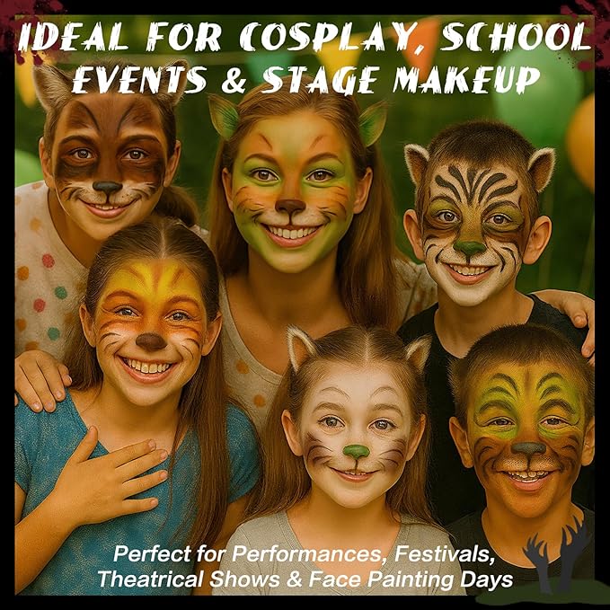 - 【Skin-Safe & Multi-Purpose】Formulated with non-toxic, vegan, and paraben-free ingredients, this cruelty-free paint is gentle on all skin types. Great for kids, adults, beginners, and professionals. Can also be used as an eye black stick for football, baseball, softball, or hunting camo.