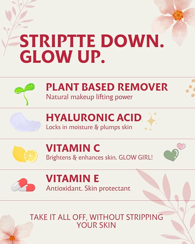 - 💄REMOVES WATER-RESISTANT & WATERPROOF MAKEUP: Striptte makeup remover wipes instantly dissolve water-resistant makeup, waterproof mascara, longwear foundation, SPF, dirt, and oil. Perfect face wipes for daily cleansing.