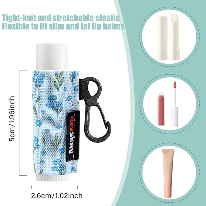 - 💋PREMIUM material: Our lipstick keychain holders were made of durable, tight-knit fine elastic, so our products are stretchable to fit fat and slim lip balms and you can feel secure to attach our products to your keys, lanyards, backpacks, and more to prevent your favourite lipsticks or lip balms from losing again! Nothing will slide out.