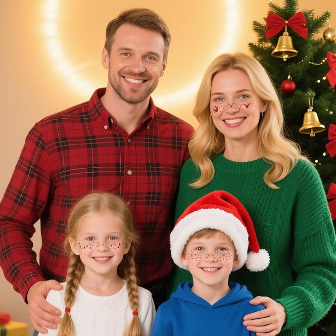 - Gentle & Safe for All Ages Cute Face Tattoos suitable for kids, teens, and women. Easily removable with makeup remover or soap—no irritation or sticky residue. Fun for the whole family this Christmas!These Christmas makeup glitter patches blend seamlessly with your skin, keeping your makeup looking.