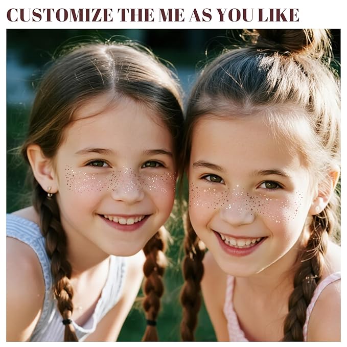- 【Wide Application】: Our glitter freckles tattoos are suitable for various occasions, including music festivals, parties, Halloween, carnivals, friends gatherings, daily wear, travel, beaches, pools, selfies, photography, gyms, weddings, Christmas, costumes, festivals, arts and crafts projects, etc. Add your unique charm and make you shine confidently in any occasion.