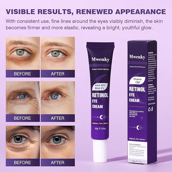 - Targeted Anti-Aging Care: This eye cream is specially designed for the delicate skin around the eyes. Enriched with retinol (a derivative of vitamin A), it helps reduce the appearance of fine lines and wrinkles, promoting smoother and firmer skin. With consistent use, it helps brighten the eye area for a more youthful and revitalized look