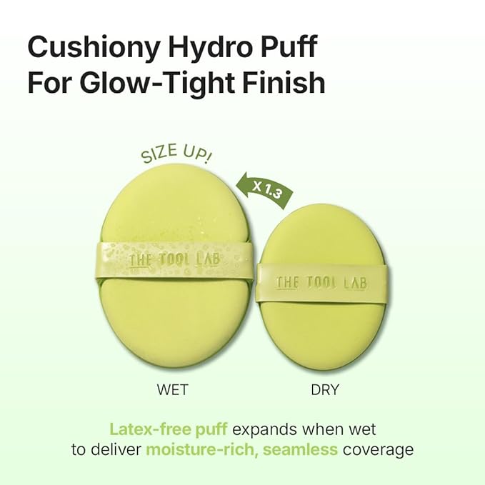 - AQUA CUSHION PUFF FOR DEWY SKIN β Ultra-soft, breathable, latex-free puff made for cushion formulas; use water-activated (damp) to lock in a dewy, glass-skin glow without irritation or lifting