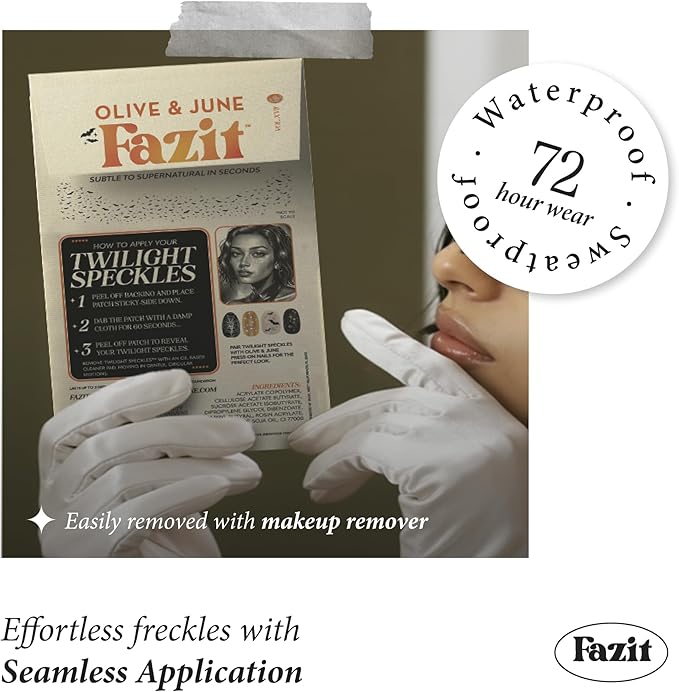 - EASY APPLICATION - Applying our water resistant twilight eye speckle patches is a breeze! First, peel off the backing and place the sticky patch on your skin. Then, wet a towel and dab the patch for 60 seconds. Finally, peel off the patch to reveal your glamorous new speckles. It's that simple β no mess, no fuss, just beautiful, natural-looking speckles in minutes. Perfect for anyone looking to add a touch of charm to their look with minimal effort!