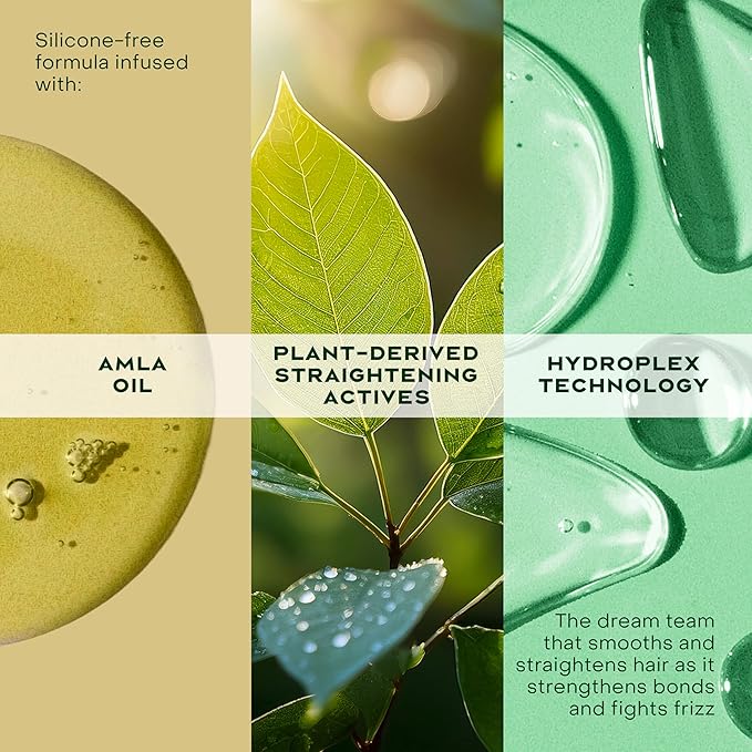 - THE TECH BEHIND THE PRESS: Powered by Plant-Derived Straightening Actives and infused with Amla Oil , this cream restores strength by repairing hydrogen bonds from within. Offering heat protection up to 410°F, it also creates a lightweight barrier th