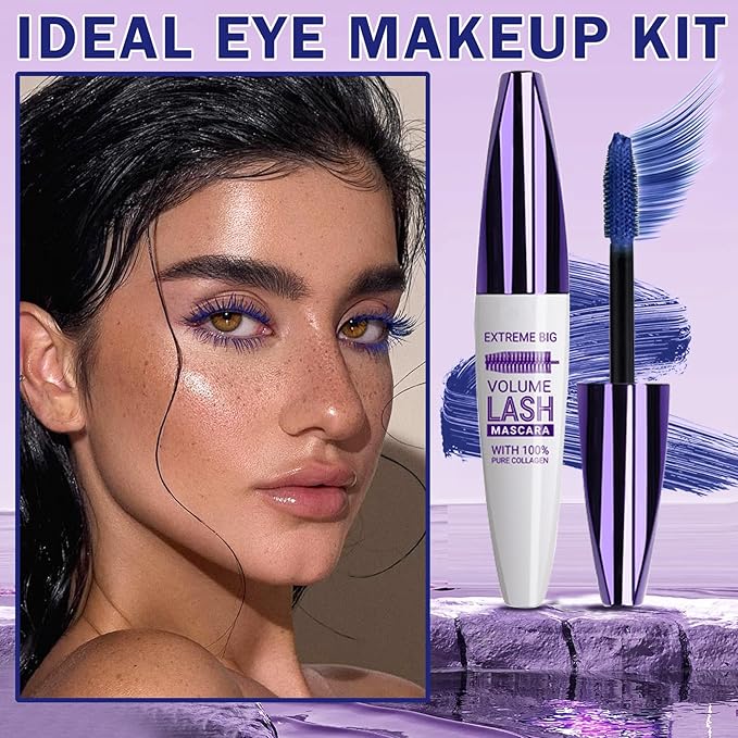 Blue Mascara for Eyelashes,5D Colored Mascara Volume and Length Waterproof,Natural Curling for Women Eye Makeup