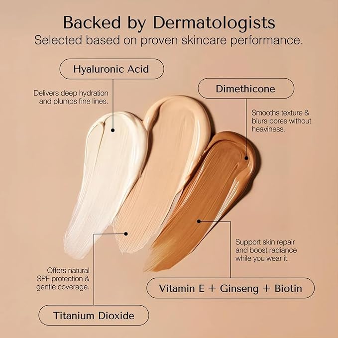 - â¨ăMakeup That Cares For Your SkinăNourish your skin while wearing makeup! Enriched with a powerful blend of Hyaluronic Acid, Aloe Vera, Rose Extract, and Vitamin E, our formula soothes and hydrates your skin. It helps balance sebum production, reduce the occurrence of breakouts, and provide lasting moistureâmaking it perfect for daily use.
