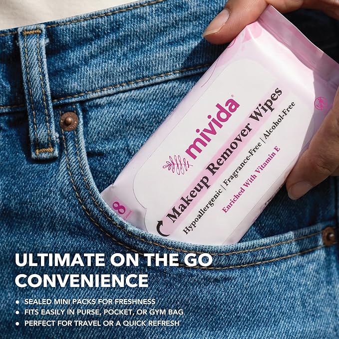 - 🌿GENTLE, HYPOALLERGENIC, FRAGRANCE FREE, ALCOHOL FREE: mivida hypoallergenic makeup remover wipes for sensitive skin, gently lift away makeup, including long-lasting, waterproof formulas and daily impurities without harsh rubbing or irritation.