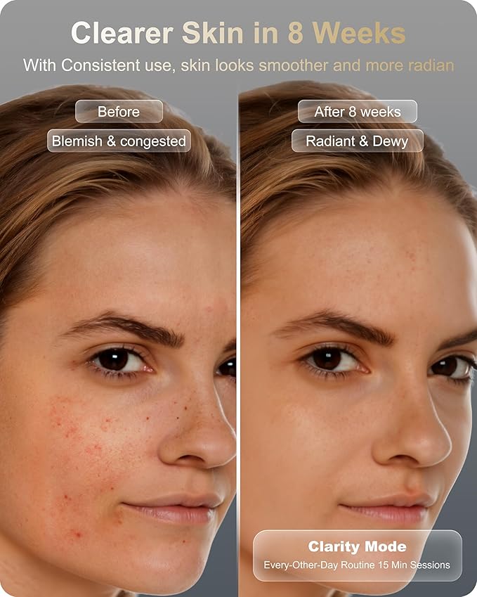 - 【ANTI-ACNE & AGING CARE】3 Science-backed modes: Firming (Red+Infrared), Clarity (Blue Light) & Restore (Mixed Light). Offers full 15 min light therapy suitable for all skin types, 3-5 times per week. Choose the modes according to treatment needs.