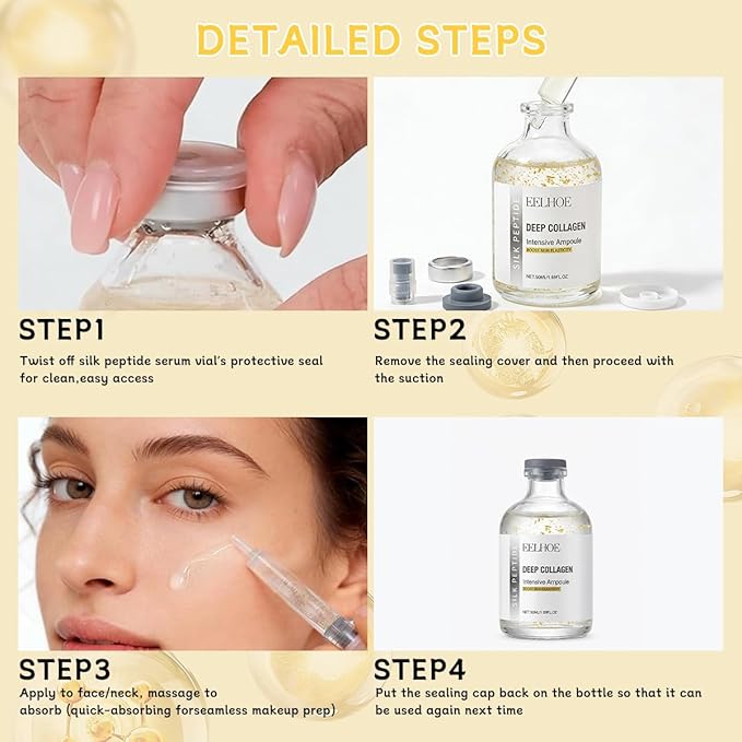 - ✨【Advanced Formula】 Our silk peptide intensive lifting ampoule features an advanced formula made with carefully selected ingredients and collagen. The lightweight texture absorbs quickly to help support skin elasticity and improve the appearance of fine lines and wrinkles.